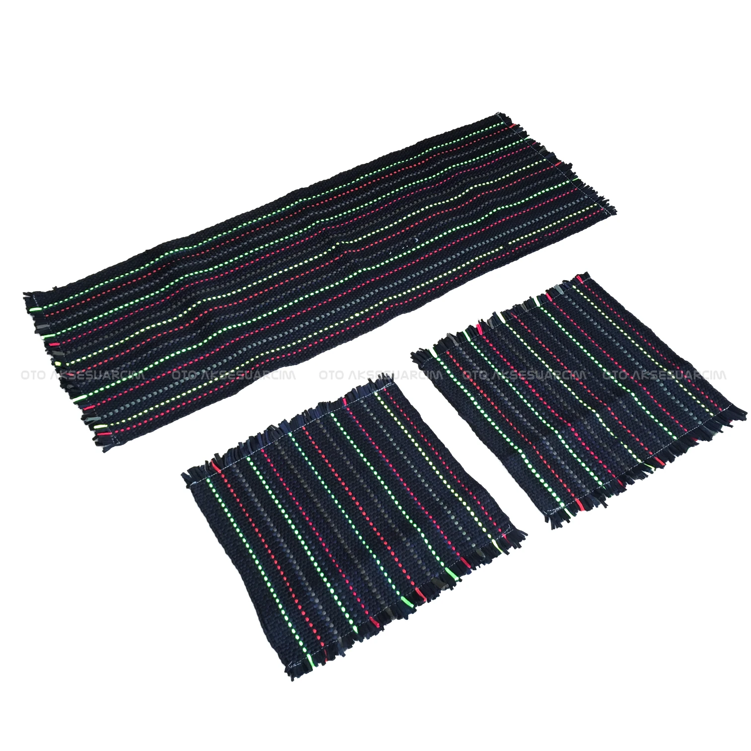 Kilim Oto Koltuk Kılıfı Serme Minder Seti 3'lü Lacivert Siyah Beyaz